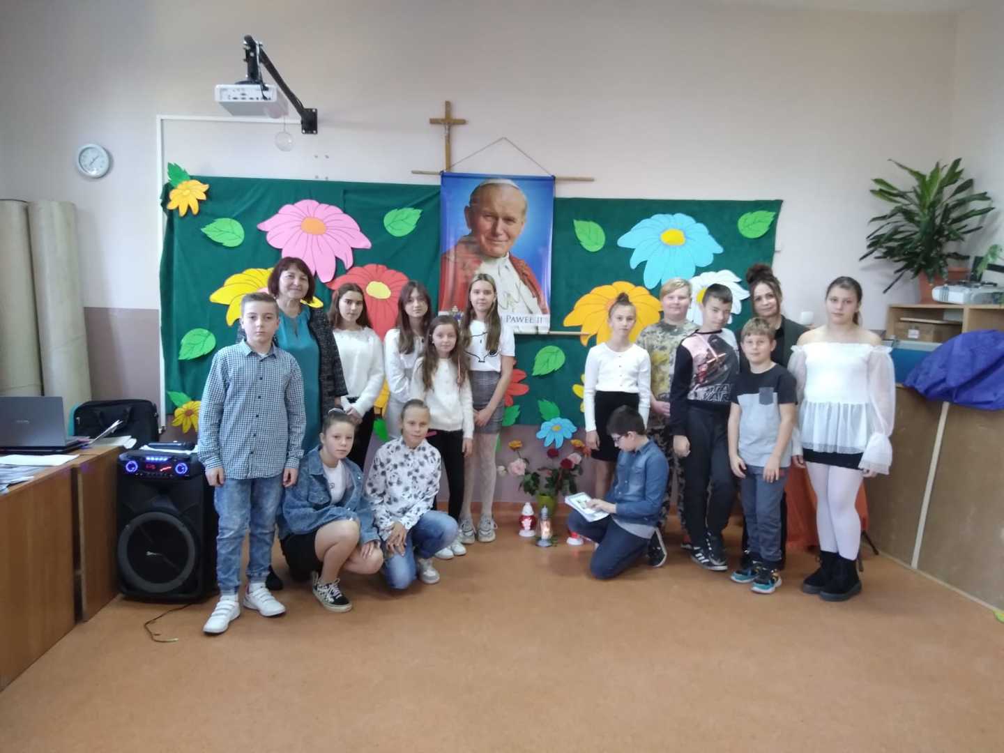 16 października jest dniem zadumy nad wielkim Polakiem, wielkim Papieżem, wielkim człowiekiem - nad Świętym Janem Pawłem II. Każdego roku w sposób szczególny obchodzimy ten dzień. Są pieśni, wiersze, wspomnienia. . . dziękujemy pani Teresie Chariton oraz uczniom naszej szkoły za przygotowanie tej pięknej uroczystości.