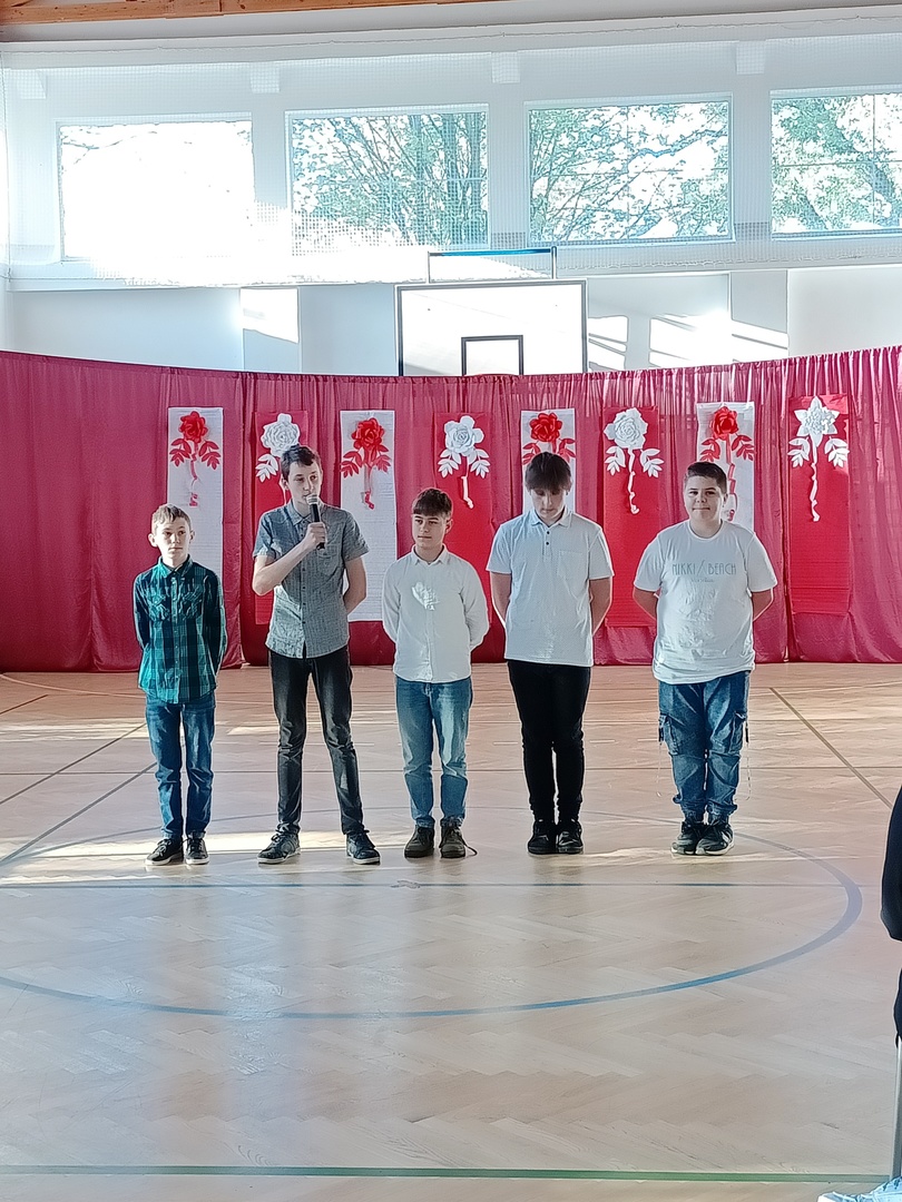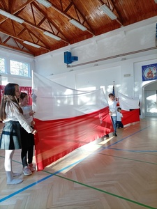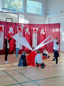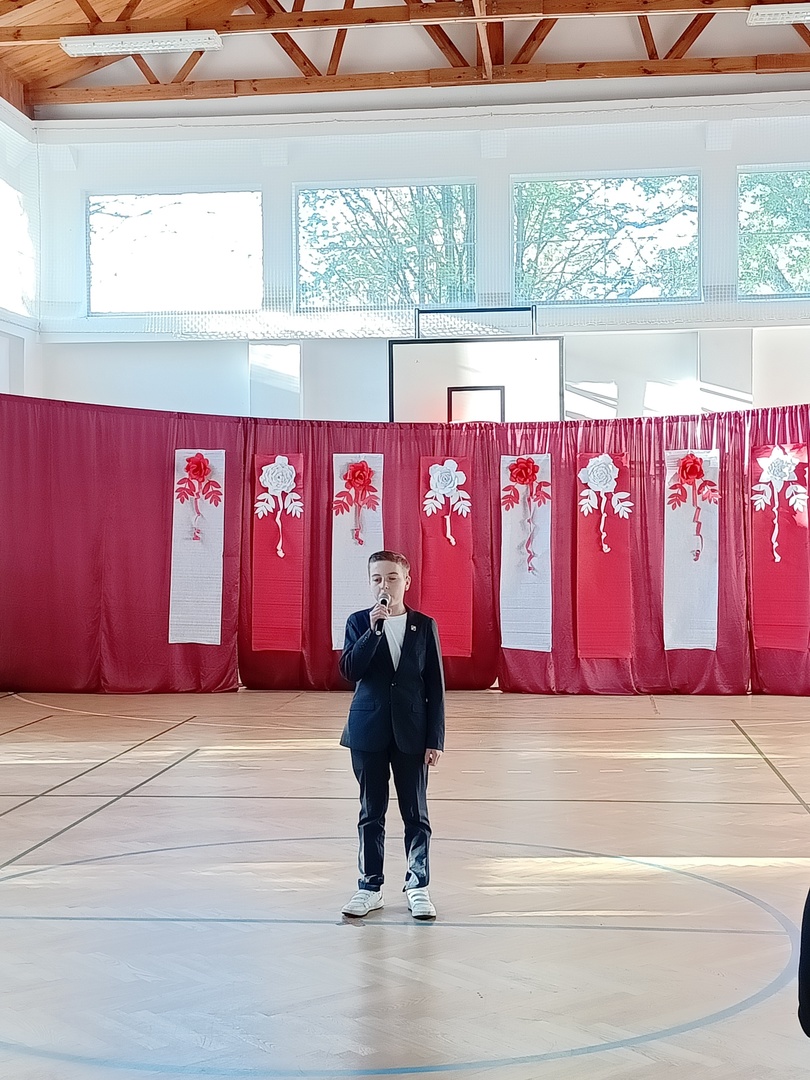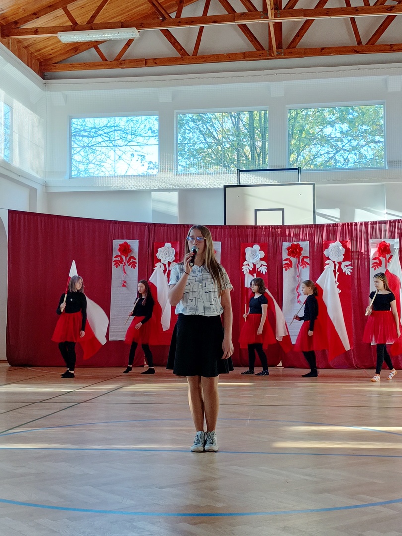 W tym roku obchody Rocznicy Odzyskania Niepodległości w naszej szkole trwały dwa dni. Pierwszego śpiewaliśmy hymn Polski, natomiast zaraz po długim weekendzie byliśmy uczestnikami przepięknej inscenizacji słowno-muzycznej, która przybliżyła wszystkim uczniom okoliczności odzyskiwania przez Polskę niepodległości. Za tę piękną uroczystość dziękujemy uczniom, którzy recytowali, śpiewali tańczyli...dostarczając widzom niesamowitych przeżyć oraz nauczycielom, którzy tych młodych aktorów przygotowali: pani Joannie Kuźlik, pani Gosi Husak, pani Małgorzacie Cybulskiej oraz panu Arkadiuszowi Dołędze.