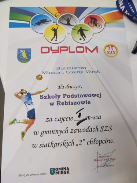 Z ogromną przyjemnością chwalimy się sukcesami naszych uczniów! Wszak I miejsce w zawodach gminnych w mini piłce siatkowej to nie lada wyczyn! BA! Nawet dwa pierwsze miejsca: Chłopcy z klasy IV wystartowali w następującym składzie: Marcel Motylski Bartosz Maksymowicz Filip Kania Dominic Łatyszonek Oskar Pięta Oliwier Rosik Skład Dziewcząt: Oliwia Główczyk Maria Maksymowicz Lena Kowalska Martyna Kropidłowska Laura Warda Samanta Zborowska OGROMNE GRATULACJE!!!